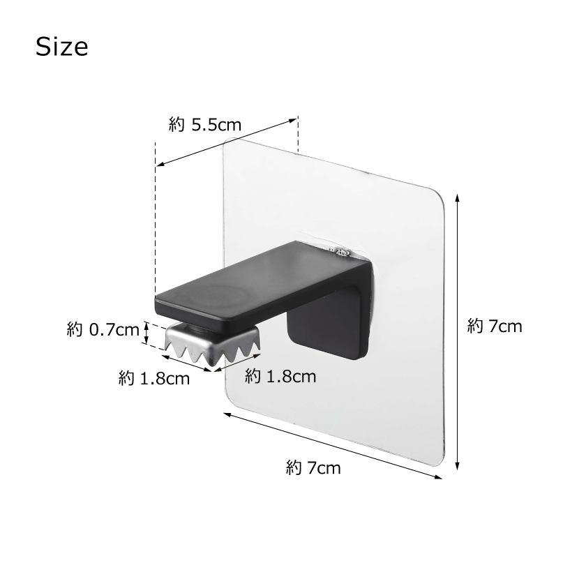 | 商品サイズ | 約1.8×1.8×0.7cm、フィルムフックサイズ:約W7×D5.5×H7cm |