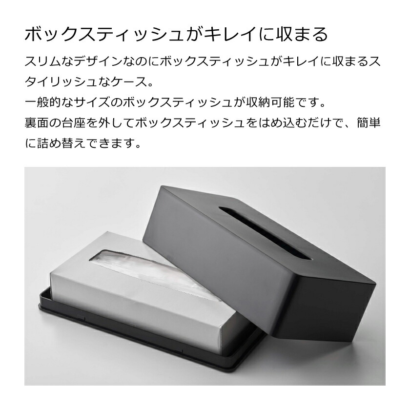 | 対応サイズ | 高さ約7cmまでの一般的なティッシュボックス ※枚数の目安:200組(400枚)以内 |