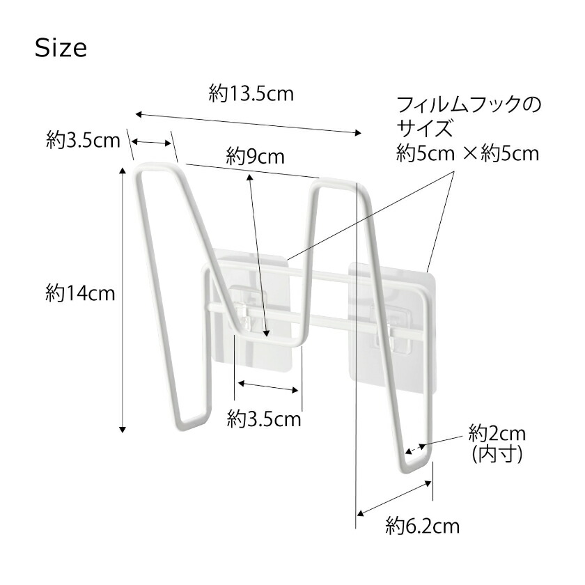 | 商品サイズ | 本体:約W13.5×D6.2×H14cm(フィルムフック含まず)、フィルムフック接着面:約W5×H5cm(1つあたり) |