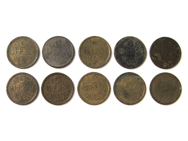 ◆小型50銭黄銅貨 10枚セット 美品〜並品
