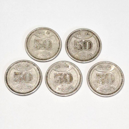 ★菊穴ナシ50円 ニッケル5枚セット★ 菊穴ナシ50円 ニッケル5枚セットをお届け致します