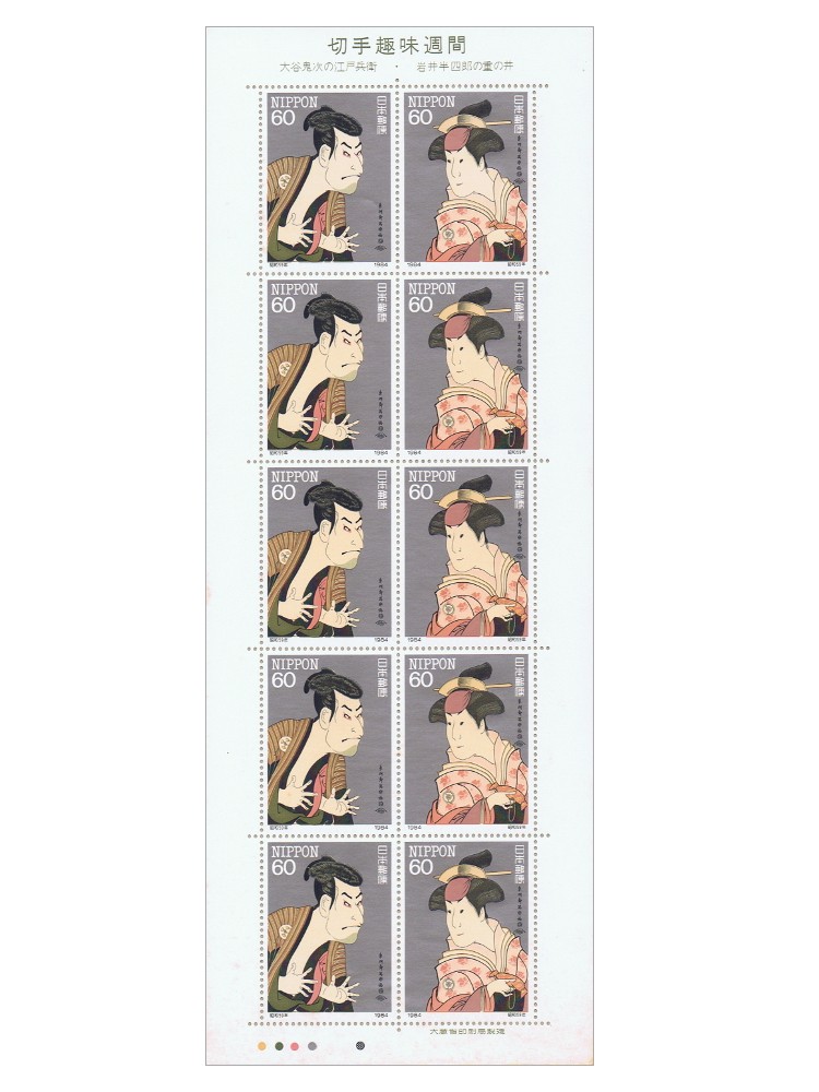 ◆切手趣味週間 昭和59年(1984) 「大谷鬼次の江戸兵衛・岩井半四郎の重の井」 10枚2種連刷シート