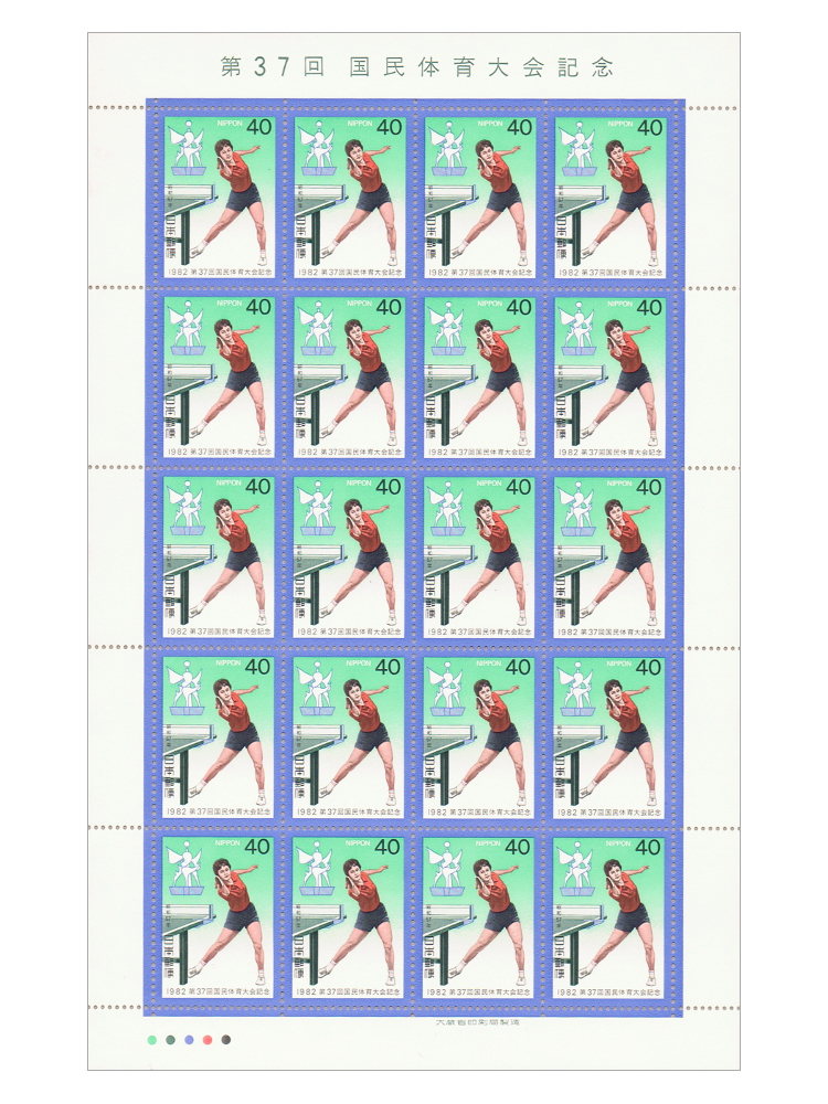 ◆第37回 国体 国民体育大会記念 昭和57年(1982) 「卓球」 40円切手 20面シート