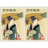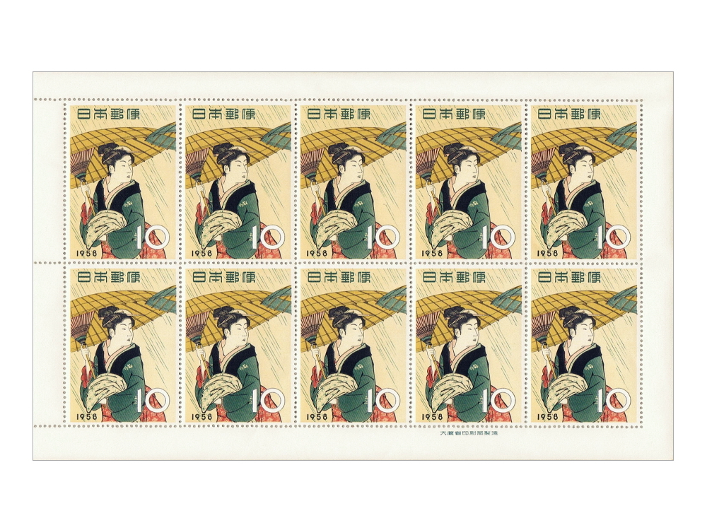 ◆切手趣味週間 昭和33年(1958) 「雨中湯帰り」 10面シート