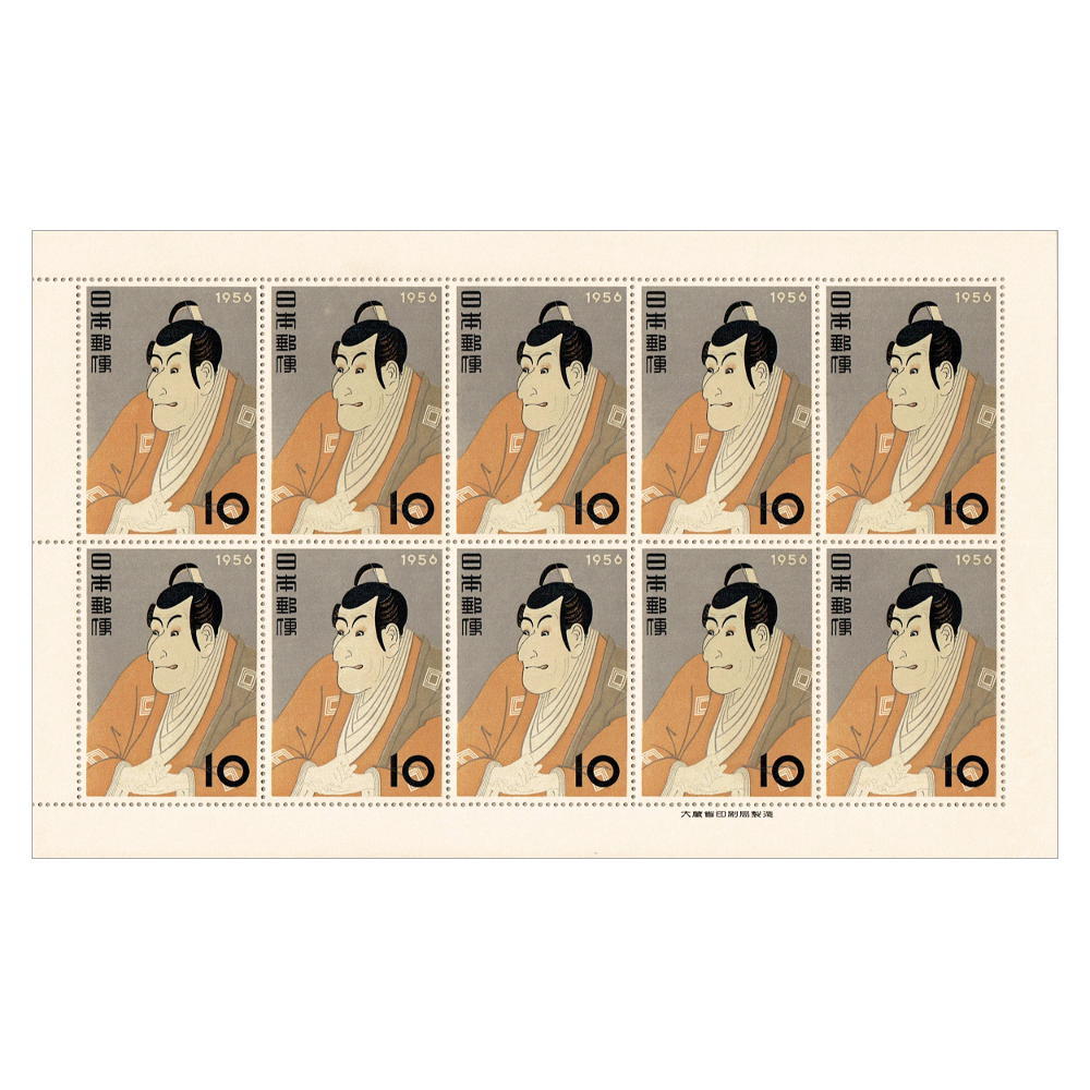切手趣味週間 「市川えび蔵(東洲斎写楽)」 昭和31年(1956) 10円切手 10面シート