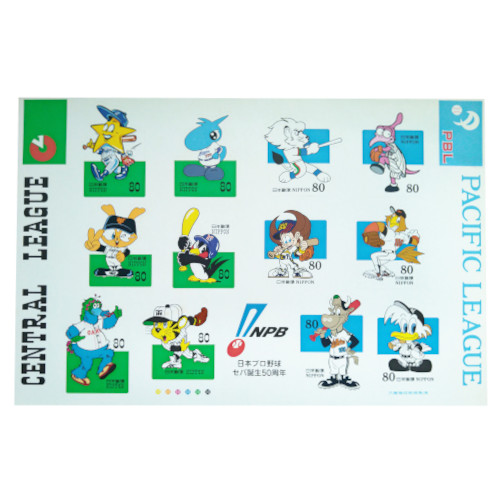 日本プロ野球セパ誕生50周年 (シール式) 平成11年(1999) 80円切手 12種シート