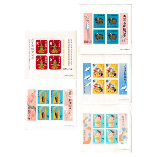 ◆年賀切手 昭和40年(1965)〜昭和44年(1969) お年玉切手シート 5枚セット