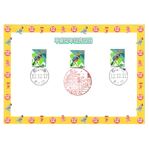 記念押印台紙 平成12年12月12日 12.12.12 消印付き 松江中央郵便局 風景印・和文印 (現品限り)