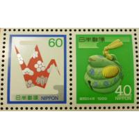 未使用★小型切手シート★日本の年賀切手・土鈴の蛇&折鶴★