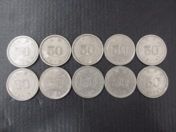★ 菊穴ナシ50円ニッケル 10枚セット(昭和30年〜33年)★ 50円ニッケル貨をお届け致します。