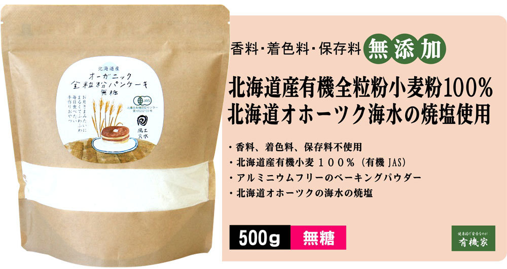 無添加 オーガニック 全粒粉 ホットケーキミックス 「 無糖 」 500g /コンパクト便 オーガニック の 全粒粉 ホットケーキミックス粉 有機 JAS 認定