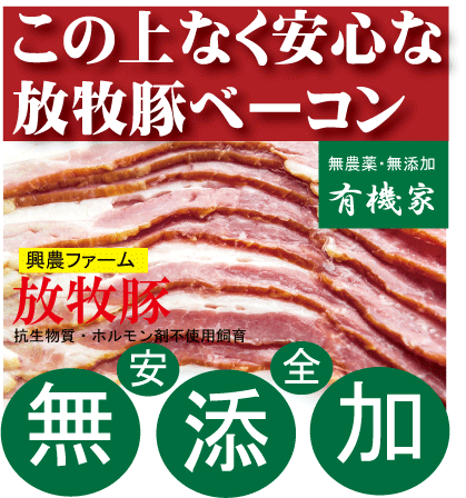 無添加ベーコンスライス150g・冷凍配送 抗生物質・ホルモン剤不使用 自然放牧飼育豚 北海道標津興農ファーム 安心なベーコン