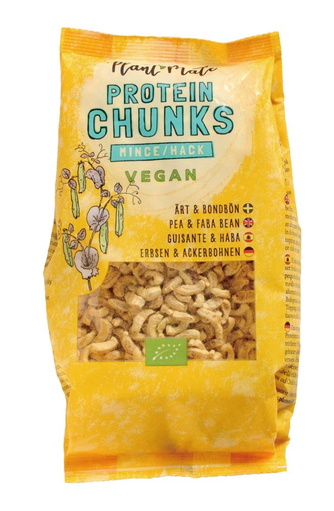 デンマークおよびデンマーク近隣国の有機ほ場で栽培されたえんどう豆とそら豆、塩のみから作ったオーガニックの代替肉です。