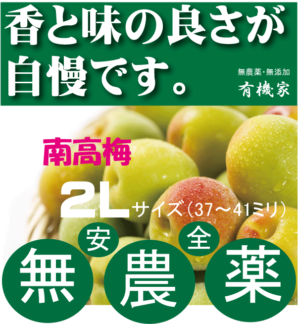 無農薬南高梅 2Lサイズ 「約37ミリ〜41ミリ」1kg 国内産100% 6月下旬発送予定 奈良県産・三重県産 有機JAS「無農薬・無添加」「王隠堂」
