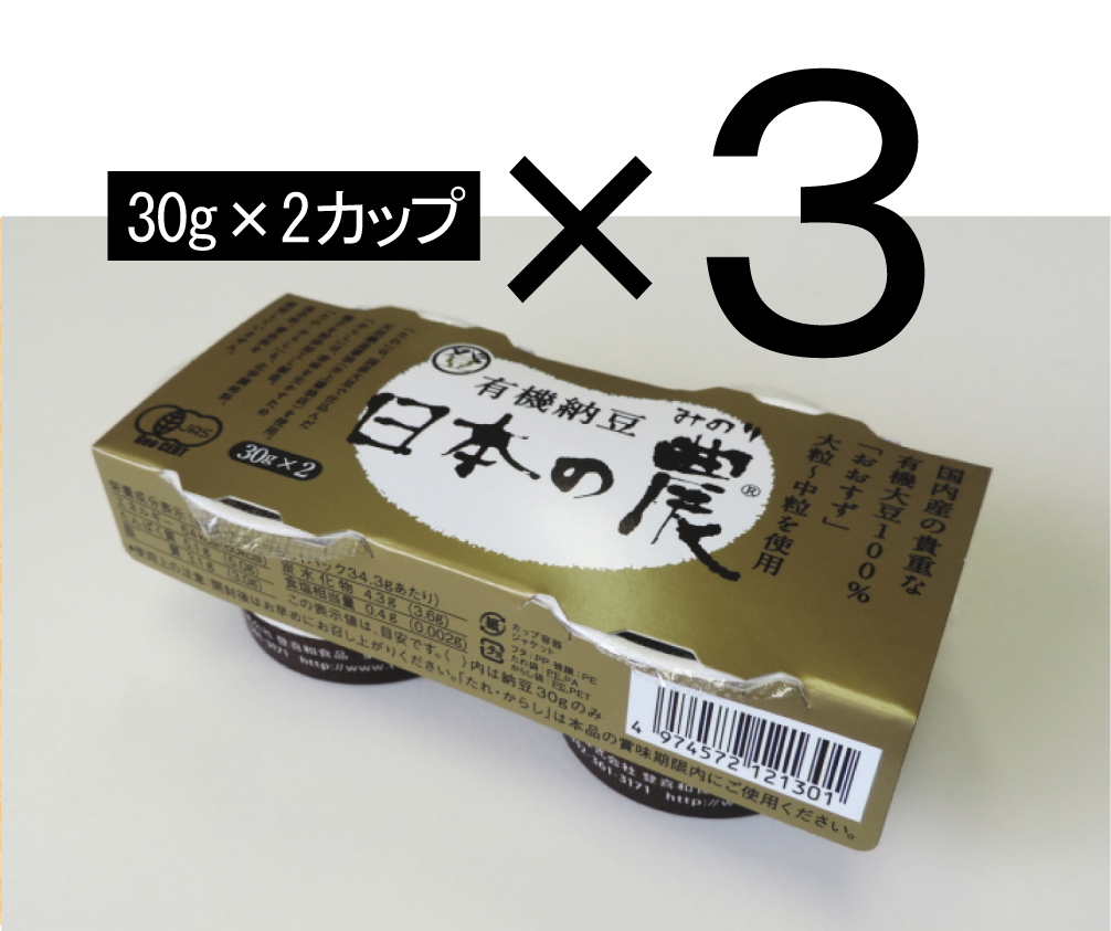 無添加 国産有機大豆使用 有機納豆 大粒 日本の農 「みのり」「30g×2カップ入り」×3パック 有機JAS認証 国内産の貴重な有機大豆を使用した納豆
