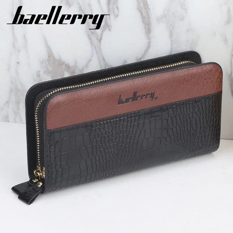 2 長財布 財布 レザー 革 クロコダイル 札入れ 小銭入れ カード入れ ダブルジップ ラウンドファスナー 大容量 メンズ ブラック 黒色 ツートン おしゃれ
