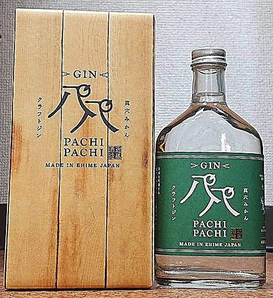 真穴みかんのJAにしうわ『真穴共選』・果実の販売会社『旬果物産』・『近藤酒造』が共同開発し、この真穴みかんを主としたクラフトジンが完成いたしました。 同封のリーフレットを見ながらキャップを開けていただいて、一面に広がるみかんの香りや緑の葉、青い空や潮の香りまでイメージしていただけたら幸いです。 味わいはみかんらしいフレシュさを求めたためエキス分が高く、ソーダ等で割るとギリシャの「ウーゾ」(神様からの贈り物)のように白濁するもの特徴の一つです。 「パチパチ」の名前の由来は丁寧にみかんを収穫する真穴地区伝統の二度摘みの音からとりました。