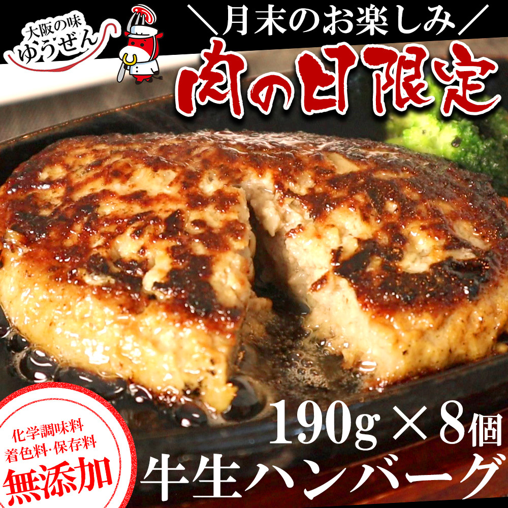肉の日 限定 ハンバーグ 冷凍 肉 牛肉 無添加 牛100% 牛生ハンバーグ 190g 8個入 おかず グルメ 爆買