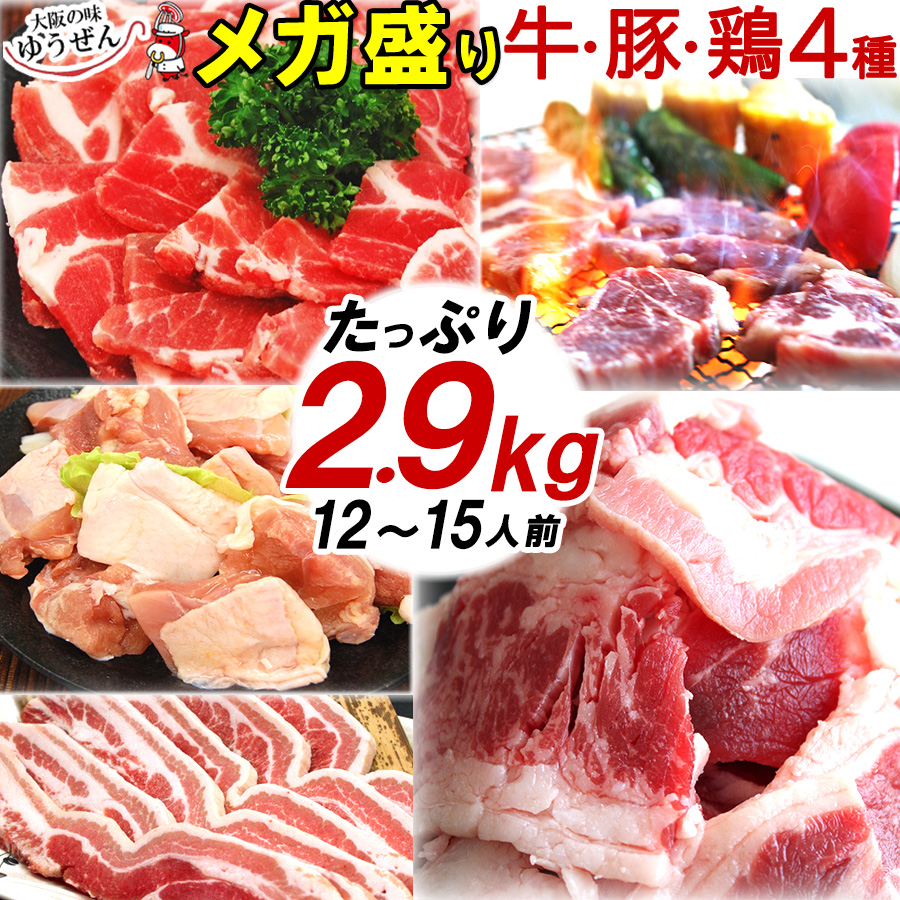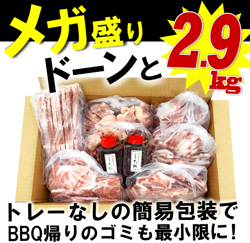 焼肉 BBQ セット 2.9kg 食材 肉 送料無 訳あり 不揃い 牛肉 豚肉 鶏肉 メガ盛り 大人数 大容量 バーベキュー 爆買