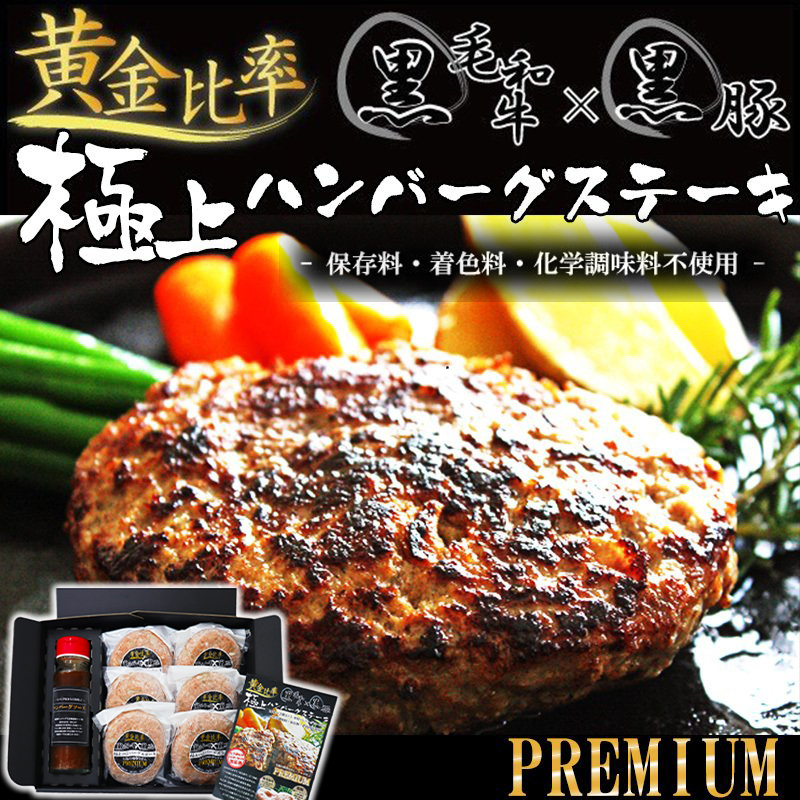 お歳暮 2025 ギフト 贈り物 ハンバーグ 無添加 黒毛和牛 黒豚 極上ハンバーグステーキ 140g × 6個 ソース セット 送料無料 ゆうぜんギフト 爆買