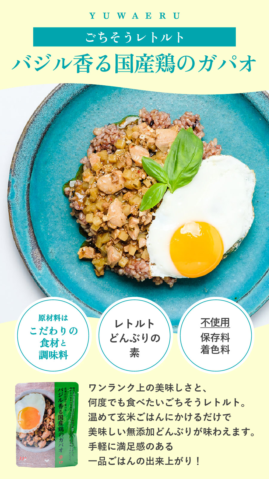 レトルト食品 惣菜 無添加 結わえる 公式販売 バジル香る国産鶏のガパオ 140g×3個