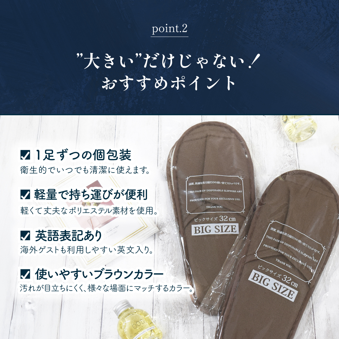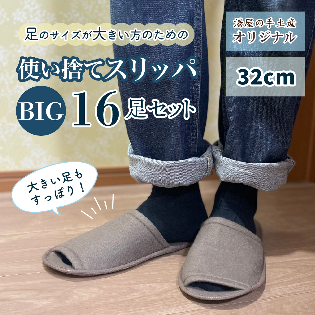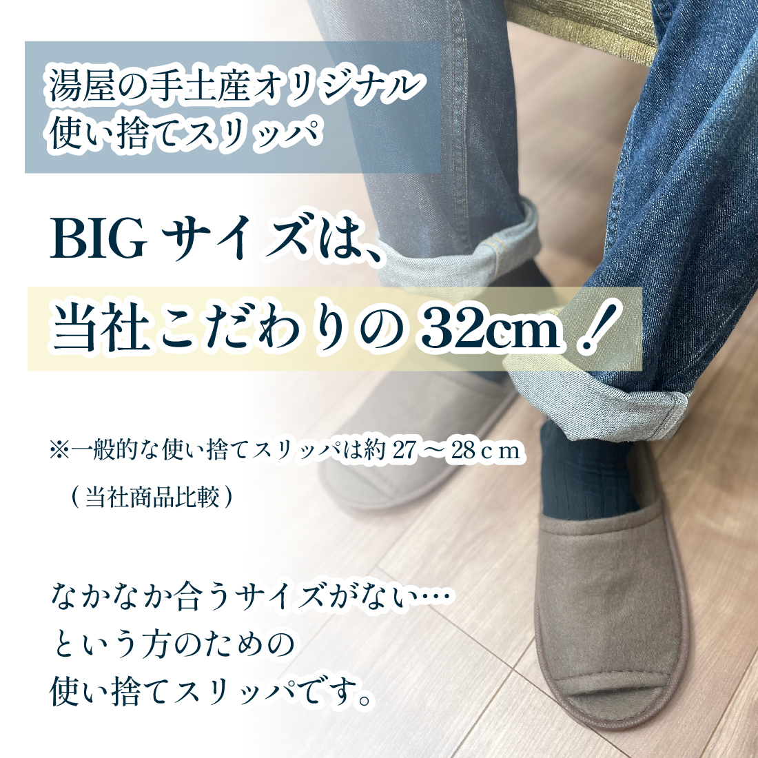 湯屋の手土産オリジナルの使い捨てスリッパ、ビックサイズ。
