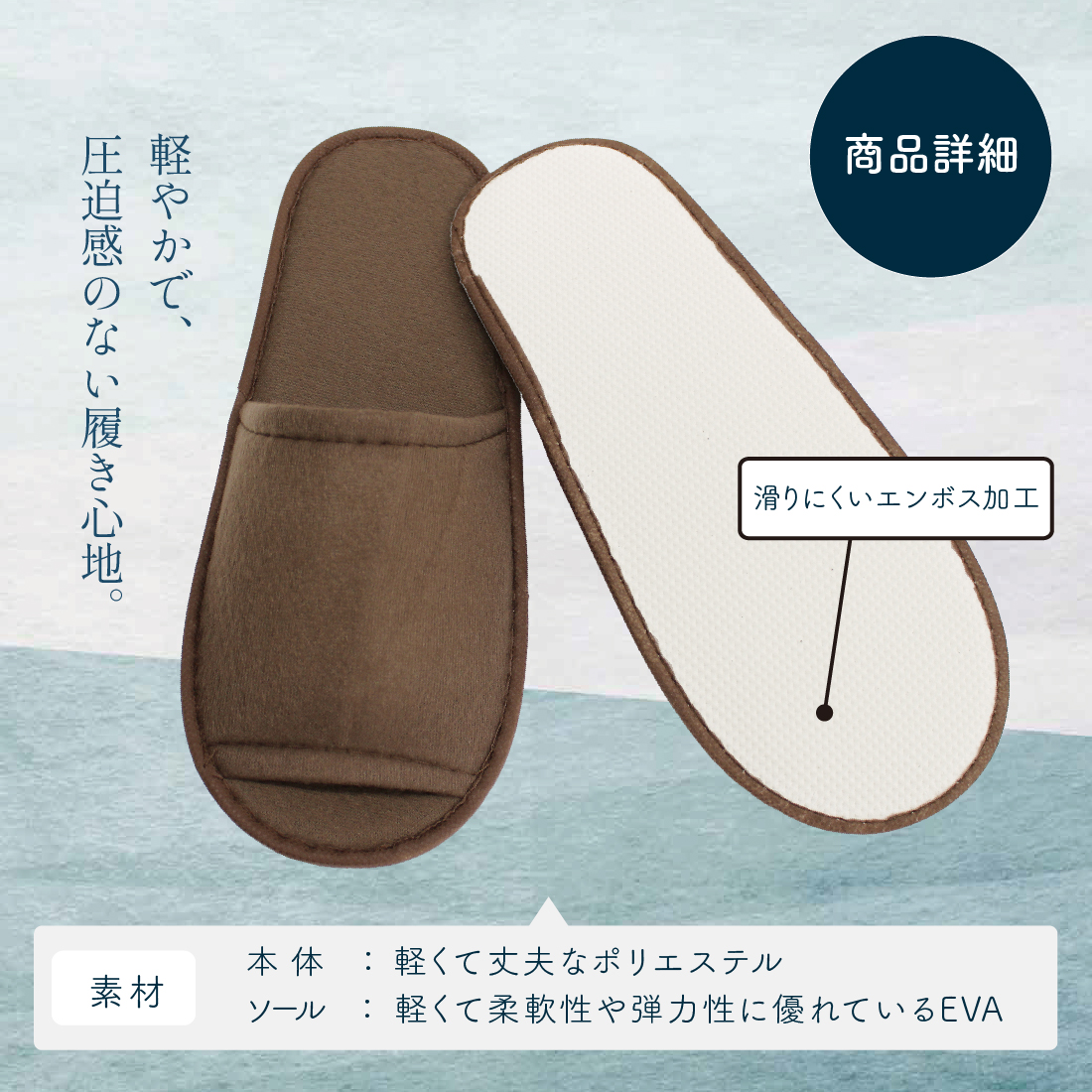 ポリエステル(本体)、EVA(ソール)