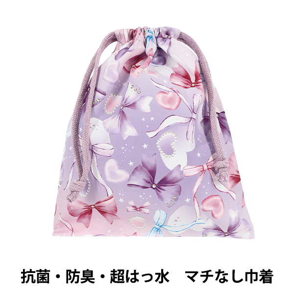 既製品 『抗菌・防臭・超はっ水 マチなし巾着 リボン パープル NN-MK-RI26-PU』