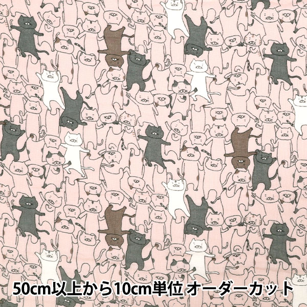 【数量5から】 生地 『Wガーゼ ふにゃダンス猫 ピンク KTS7124-B』 COTTON KOBAYASHI コットンこばやし 小林繊維