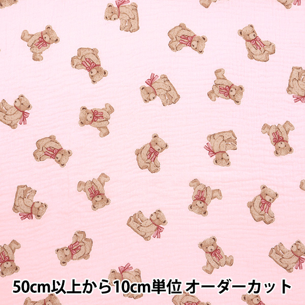 【数量5から】 生地 『Wガーゼ ふあふあガーゼ くま ピンク 150-1646-B3』