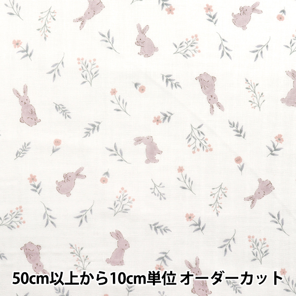 [Wガーゼ ダブルガーゼ 二重ガーゼ ベビー キッズ 布 うさぎ 植物 花 オフ白]
