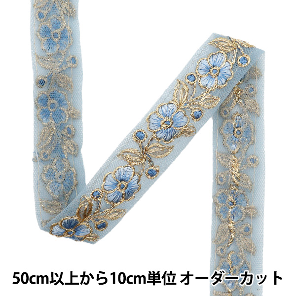 [刺しゅう ししゅう リボン りぼん 装飾 服飾 アクセサリー インテリア 雑貨 インド刺繍リボン 金色 ゴールド 青 水色]