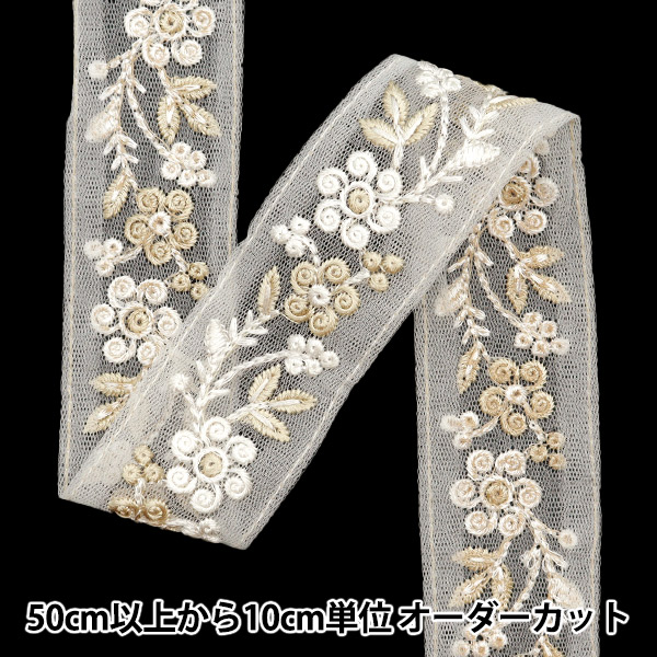 [刺しゅう ししゅう リボン りぼん 装飾 服飾 アクセサリー インテリア 雑貨 インド刺繍リボン インドししゅう インド刺しゅう 白]