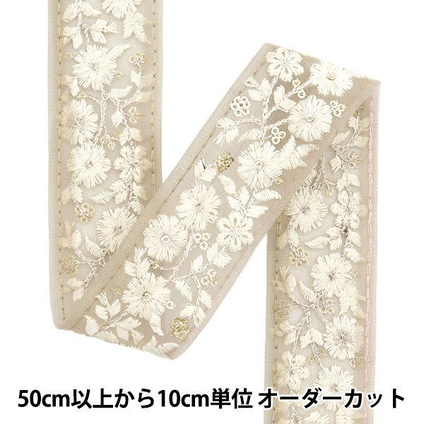 [刺しゅう ししゅう リボン りぼん 装飾 服飾 アクセサリー インテリア 雑貨 インド刺繍リボン インドししゅう インド刺しゅう 茶 生成]