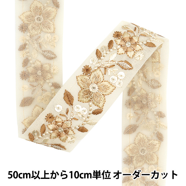 [刺しゅう ししゅう リボン りぼん 装飾 服飾 アクセサリー インテリア 雑貨 インド刺繍リボン インドししゅう インド刺しゅう 薄茶 生成]