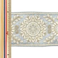 [刺しゅう ししゅう リボン りぼん 装飾 服飾 アクセサリー インテリア 雑貨 インド刺繍リボン インドししゅう インド刺しゅう 灰色 生成 金]