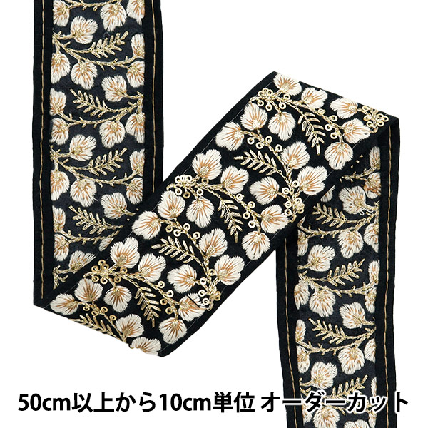 [刺しゅう ししゅう リボン りぼん 装飾 服飾 アクセサリー インテリア 雑貨 インド刺繍リボン インドししゅう インド刺しゅう 黒 生成 金]