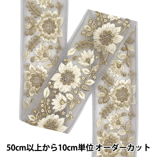[刺しゅう ししゅう リボン りぼん 装飾 服飾 アクセサリー インテリア 雑貨 インド刺繍リボン インドししゅう インド刺しゅう 灰色 白]