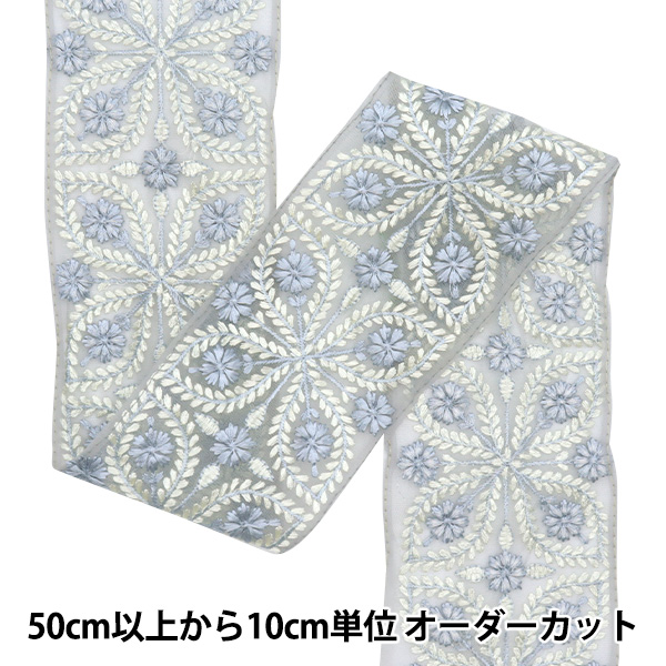 [刺しゅう ししゅう リボン りぼん 装飾 服飾 アクセサリー インテリア 雑貨 インド刺繍リボン インドししゅう インド刺しゅう 灰色 白 ホワイト]