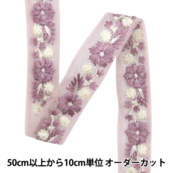 [刺しゅう ししゅう リボン りぼん 装飾 服飾 アクセサリー インテリア 雑貨 インド刺繍リボン インドししゅう インド刺しゅう 紫 白 ホワイト]