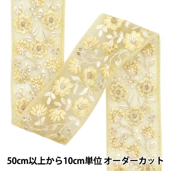 [刺しゅう ししゅう リボン りぼん 装飾 服飾 アクセサリー インテリア 雑貨 インド刺繍リボン インドししゅう インド刺しゅう 黄色 白]