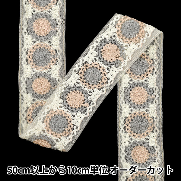 [刺しゅう ししゅう リボン りぼん 装飾 服飾 アクセサリー インテリア 雑貨 インド刺繍リボン インドししゅう インド刺しゅう 白 灰色 ピンク]