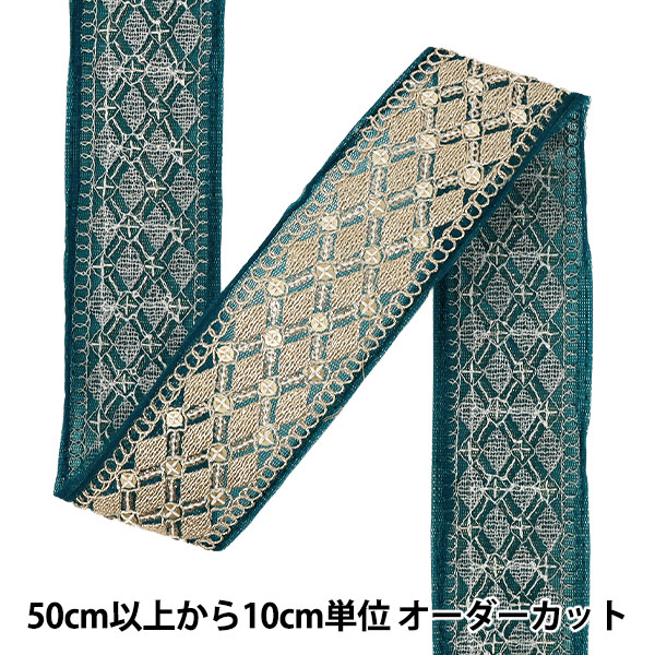 [刺しゅう ししゅう リボン りぼん 装飾 服飾 アクセサリー インテリア 雑貨 インド刺繍リボン テープ ブレード インド インドししゅう インド刺しゅう ハンドメイド 手作り 緑 金]