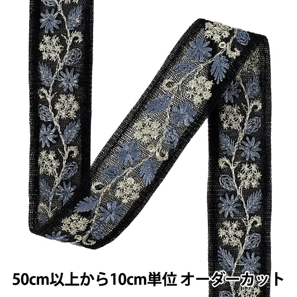 [刺しゅう ししゅう リボン りぼん テープ ブレード 装飾 服飾 アクセサリー インテリア 雑貨 バッグ ショルダーストラップ ハンドメイド 手作り インド刺繍リボン インド刺しゅう 黒 クロ]