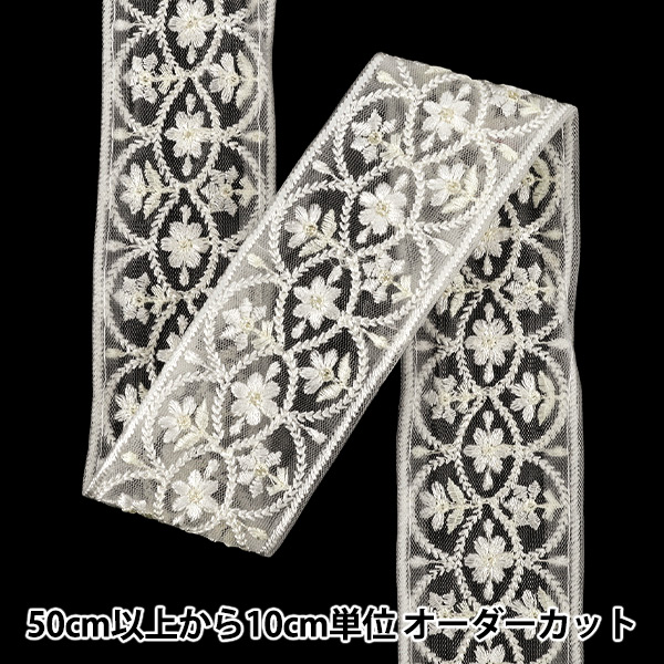 [刺しゅう ししゅう リボン りぼん テープ ブレード 装飾 服飾 アクセサリー インテリア 雑貨 バッグ ショルダーストラップ ハンドメイド 手作り インド刺繍リボン インド刺しゅう 白]