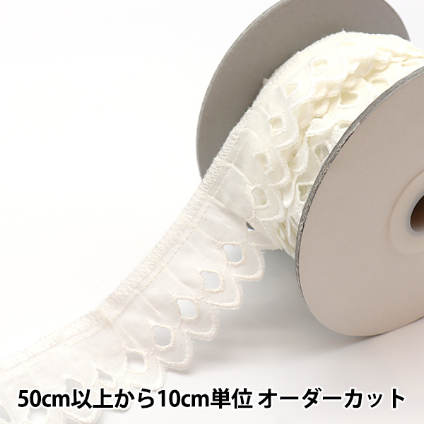 【数量5から】 レース 『綿フリル 2番色 3556F-2』綿素材ならではのナチュラルなレース♪綿生地に刺しゅうを施したレースです。
