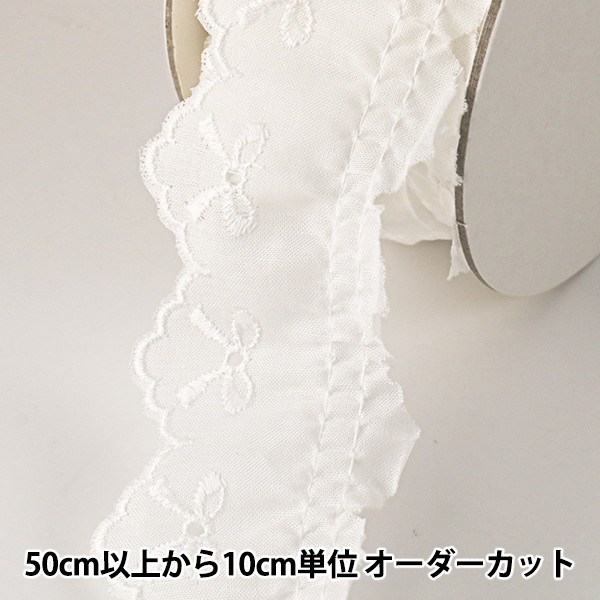 【数量5から】 『綿フリルレース 白 幅約40mm』 8106-1Sフリル加工されたボリュームのあるレースです綿生地に刺しゅうを施したレースです。