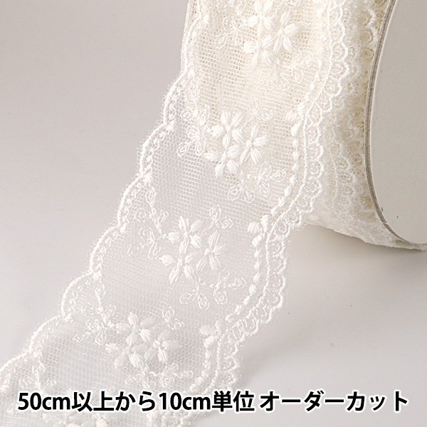 【数量5から】 レースリボンテープ 『チュールレース 白 幅約48mm 24122』