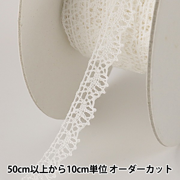 【数量5から】レースリボンテープ 『トーションレース 白 幅約11mm 23223』洋服の装飾はもちろん、アクセサリーパーツにも♪綿素材のナチュラルな雰囲気のレースです。