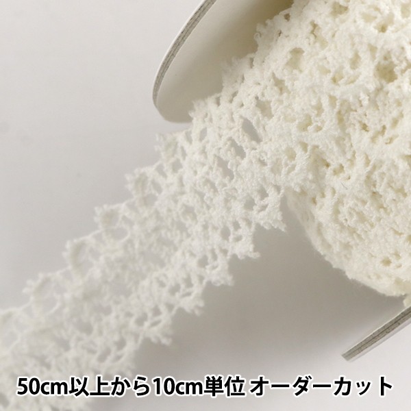 縫い付けても生地がつれずに、着心地よくアレンジができます。ニット用の針と糸を使い、糸調子を少しゆるめに縫い付けてお使い下さい。[ホワイト コットン デコレーション]◆規格:約24mm幅